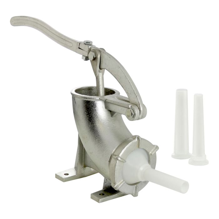 RÉALISEZ VOS PROPRES SAUCISSES ET BOUDINS MAISON : Le poussoir manuel horizontal est idéal pour réaliser ses propres saucisses et boudins, grâce à ses 3 entonnoirs en PP (polypropylène). Capacité de remplissage : 2L.