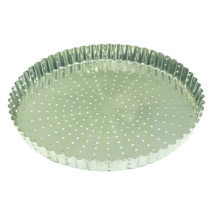 Tourtière cannelée perforée - fer blanc - fond fixe - Ø300 mm h28 mm
